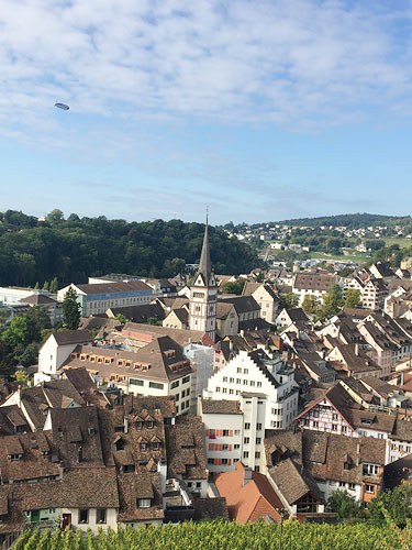 Nicht so, wir, denn natürlich hatten wir eine Stadtführung gebucht. Am Munot, der massiven Zirkularfestung und dem Wahrzeichen der Stadt mitten im Zentrum, ging’s los. Unser Guide, Thomas Stoll, führte uns ein wenig herum. Um genau zu sein, Prof. Dr. med. Thomas Stoll. Den Stadtführer gibt er lediglich in seiner Freizeit und aus purer Begeisterung für „seine“ mittelalterliche Stadt Schaffhausen.