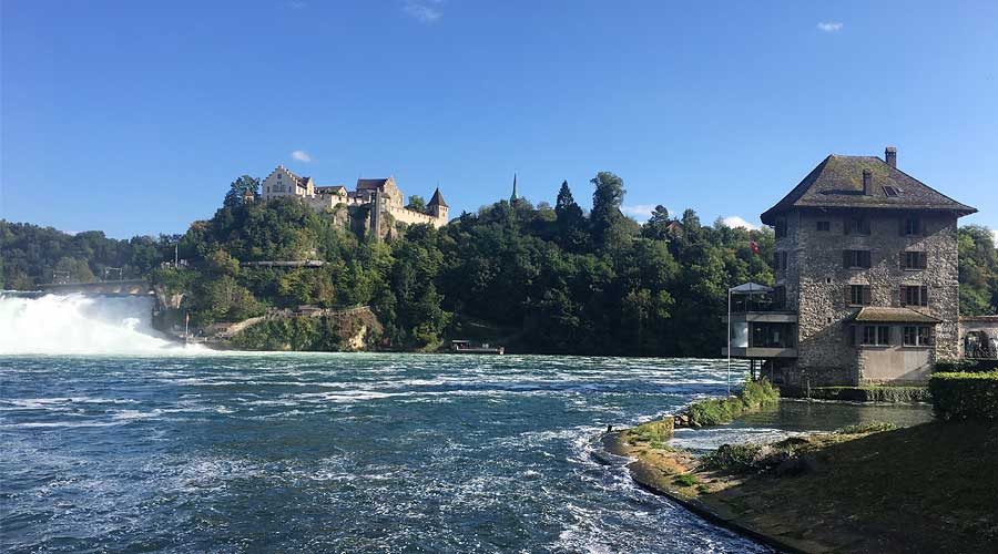Tipp: Wer den Rheinfall besucht, sollte sich den Immersive Art Rheinfallfilm „Rhyality“ nicht entgehen lassen: Ein virtueller Rheinfall in einer 360°-Art-Halle zeigt den Rheinfall in vier Jahreszeiten, sodass man als Zuschauer das Gefühl hat, mitten im Geschehen zu sein. (Die immersive Technik ist übrigens bei Computerspielen gängig.)